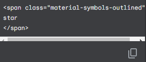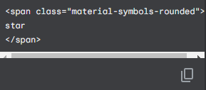 여러 아이콘들을 눌러보면 아이콘을 넣기 위한 예시 HTML 코드를 자세히 살펴보면 tag명은 `span`으로 동일하고, class명은 검색 바 밑의 `Outlined`, `Rounded`, `Sharp`를 체크할 때마다 바뀌고, 아이콘 클릭 시 마다 변경되는 것은 tag 내부의 `text`이다.