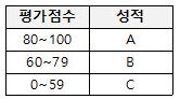 | ② 80 | 위 표의 평가점수의 A와 B - 경계 값에 해당 |